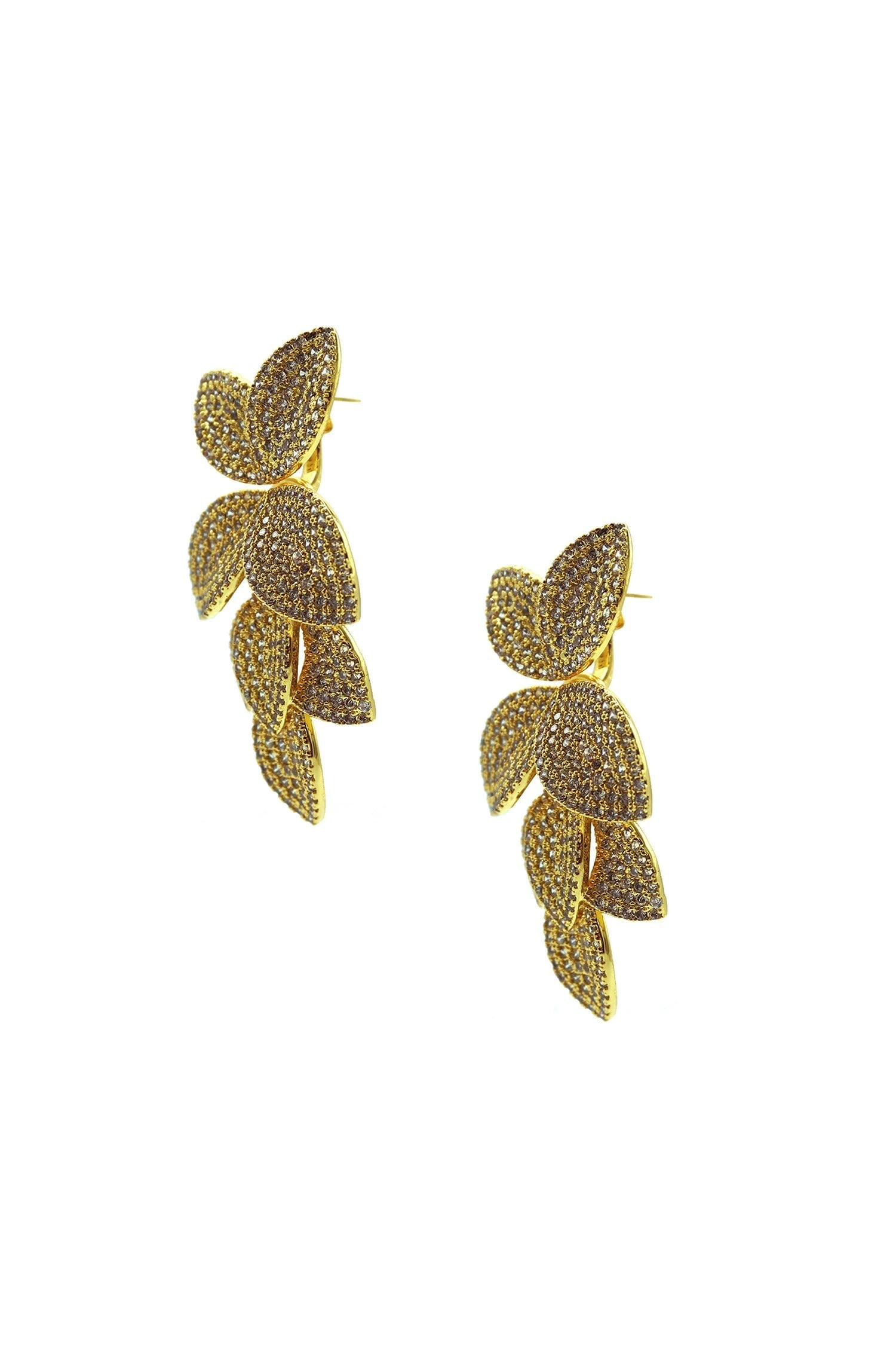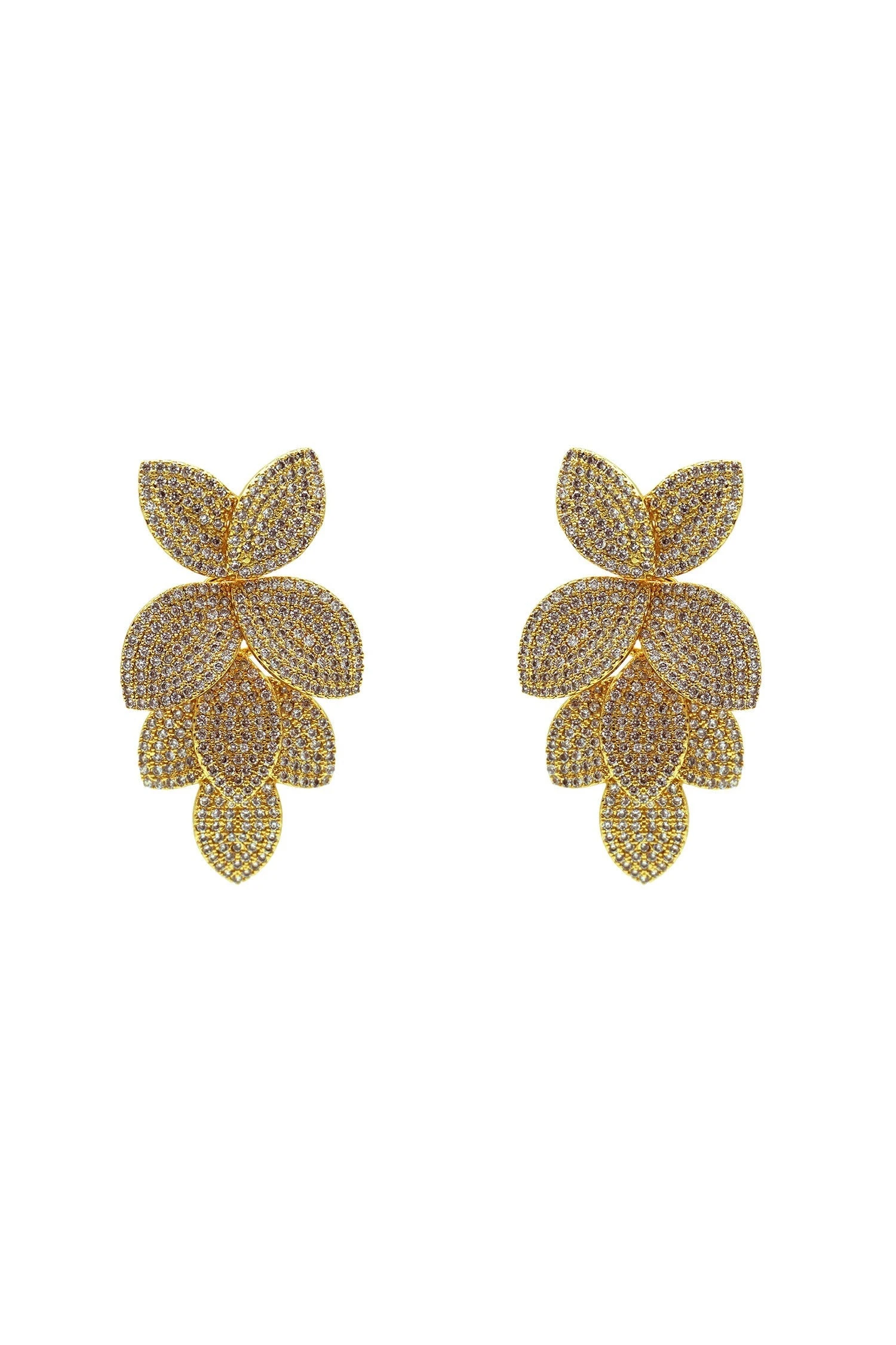 Elevate your look with the Galina Gold Embellished Earrings. Rendered from a gold hardware with silver diamantes.